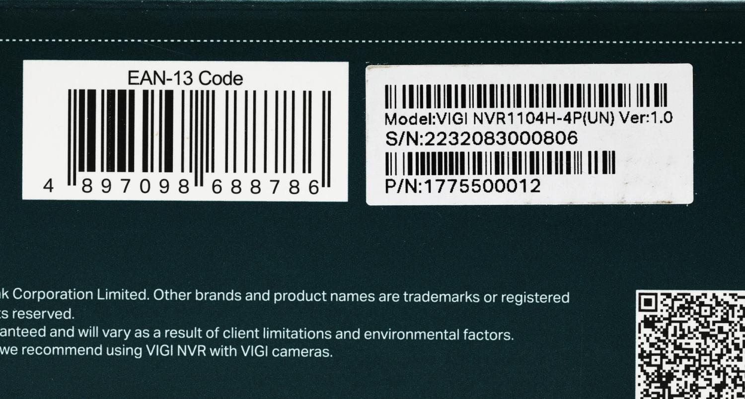 | PartNumber/Артикул Производителя | VIGI NVR1104H-4P |