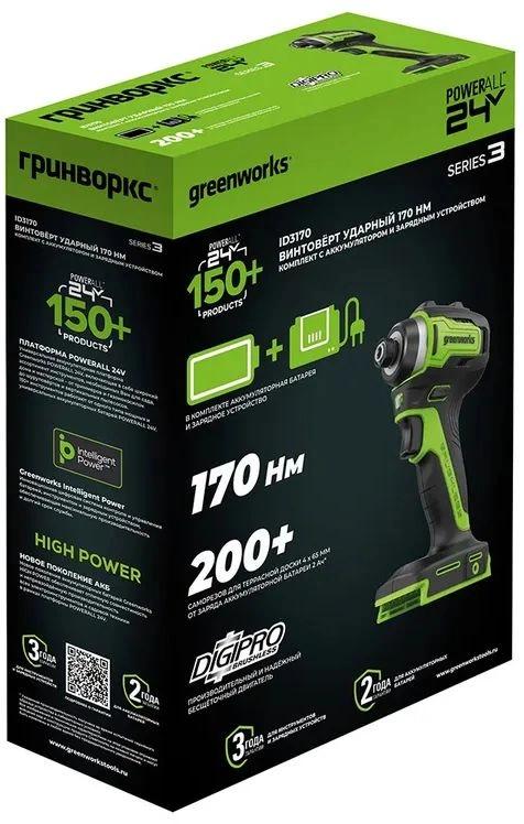 Винтоверт Greenworks ID3170 аккум. патрон:шестигр.1/4" (3804907CUC)