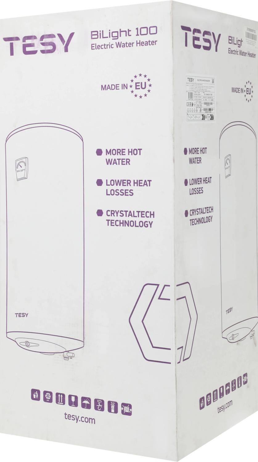 | Описание | Объем 100 литров, корпус стандартного диаметра 44 см, с механическим управлением, медным ТЭНом мощностью 2,0 кВт и вертикальной установкой, от европейского производителя Tesy, c инновационным стеклокерамическим внутренним покрытием бака Crystal Tech. |