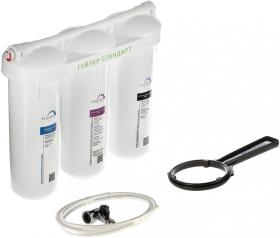 | Комплектация | Фильтр Картриджи – 3 шт. Ключ для корпуса Ключ для донной заглушки Трубка соединительная 1/4” фитинг прямой 1/4""-1/2"" трубка-резьба фитинг прямой 1/4-3/8"" трубка-резьба Тройник-адаптер с краном Инструкция Упаковка |