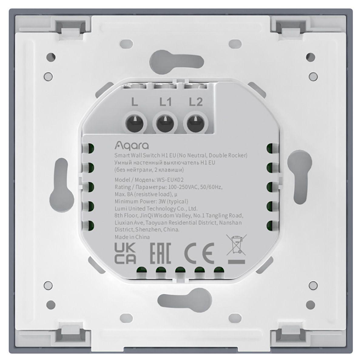 Выключатель двухклавишный без нейтрали Aqara Smart Wall Switch H1 EU (WS-EUK02 graphite) / 4dealer.ru