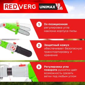 | Особенности | Единая аккумуляторная система REDVERG 18V - позволяет использовать один аккумулятор с различным электроинструментом одной серии |