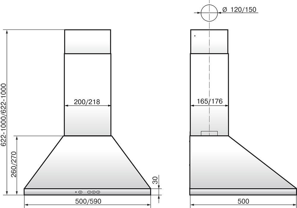 Тип кухонной вытяжки настенные|Управление Механическое (ползунок)|Ширина вытяжки 50cm|Число ступеней мощности 3|Максимальная производительность 430 м3/ч|Макс. уровень шума 54 дБ