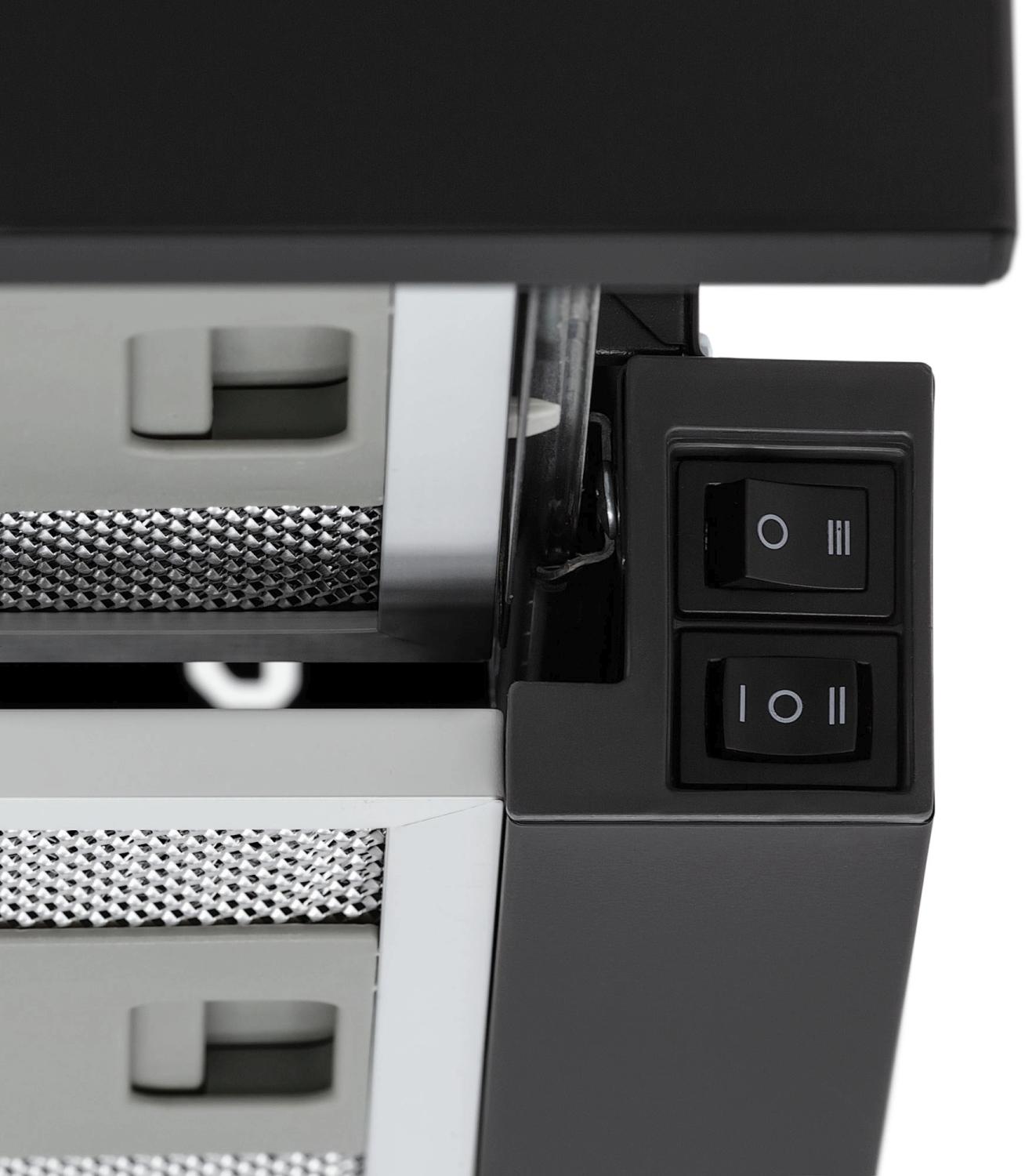 | Особенности | Управление с функцией «Slide Stop» - вытяжка запоминает последнюю выбранную скорость. |