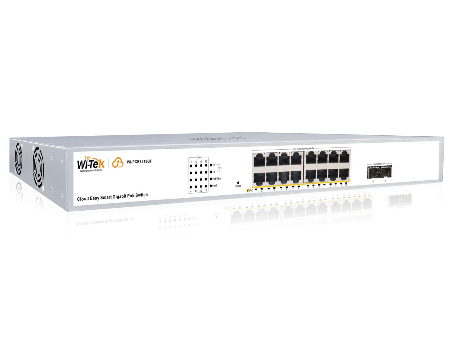 WI-PCES318GF, настраиваемый PoE 250Вт, порты 16 PoE GE + 2 SFP, Easy Smart