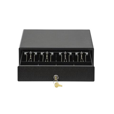 Компактный денежный ящик создан специально для кассовых мест с ограниченным рабочим пространством. Он идеально подходит для установки в магазинах у дома, небольших кафе и заведениях стрит-фуд, на островках в торговых центрах.-Изменяемая ширина отсеков для купюр
