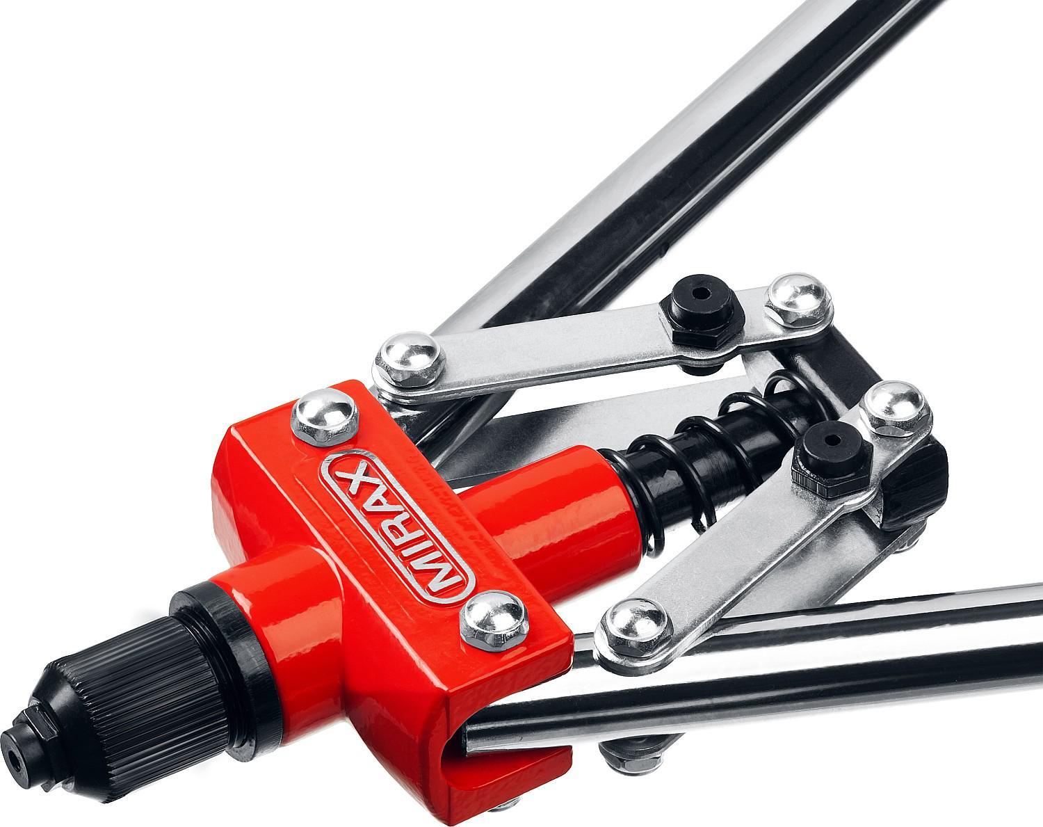 | Описание | Двухрычажная конструкция увеличивает приложенное усилие; Регулировка усилия облегчает работу; Литой корпус обеспечивает надежность в работе. Размер заклепок - 3.2; 4.0; 4.8 мм. Max скрепляемая толщина - 45 мм. |