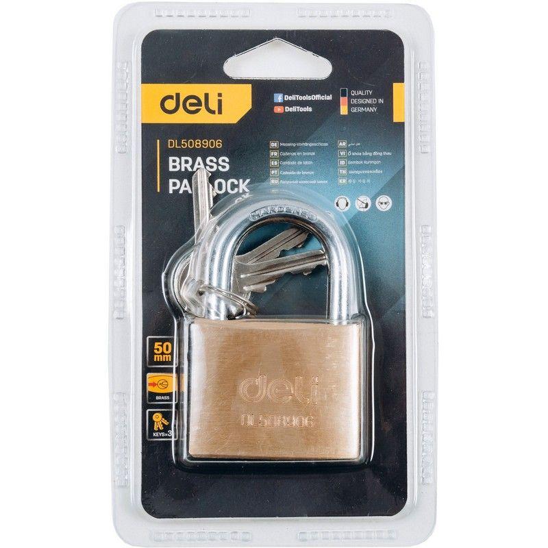 Замок навесной Deli DL508906 Bad Pack латунный, 50мм