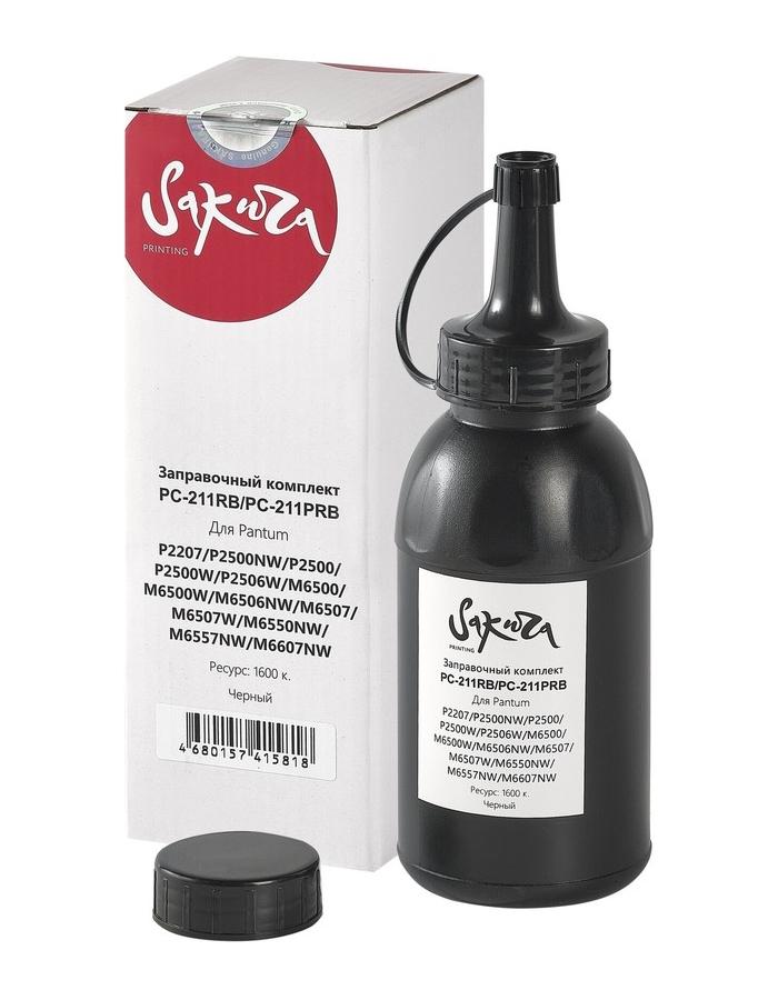 Заправочный комплект тонера с чипом Sakura ZKPC-211RB для Pantum , черный, 65гр. / 4dealer.ru